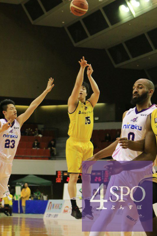 1枚目の写真は、ファイブアローズの選手が、シュートを決めるところです。相手チームの選手をかわして、シュートを打ったところはとてもかっこよかったです。